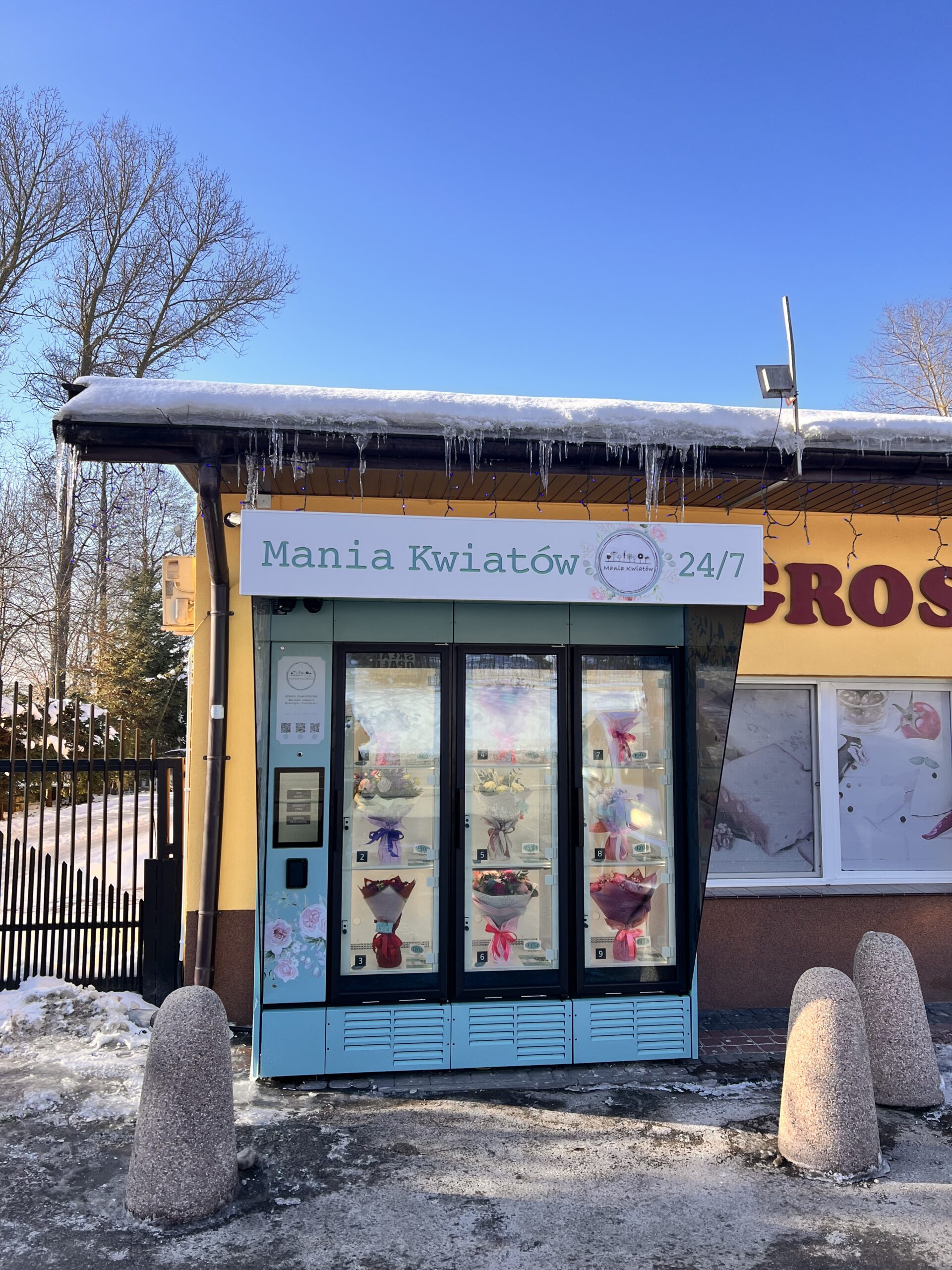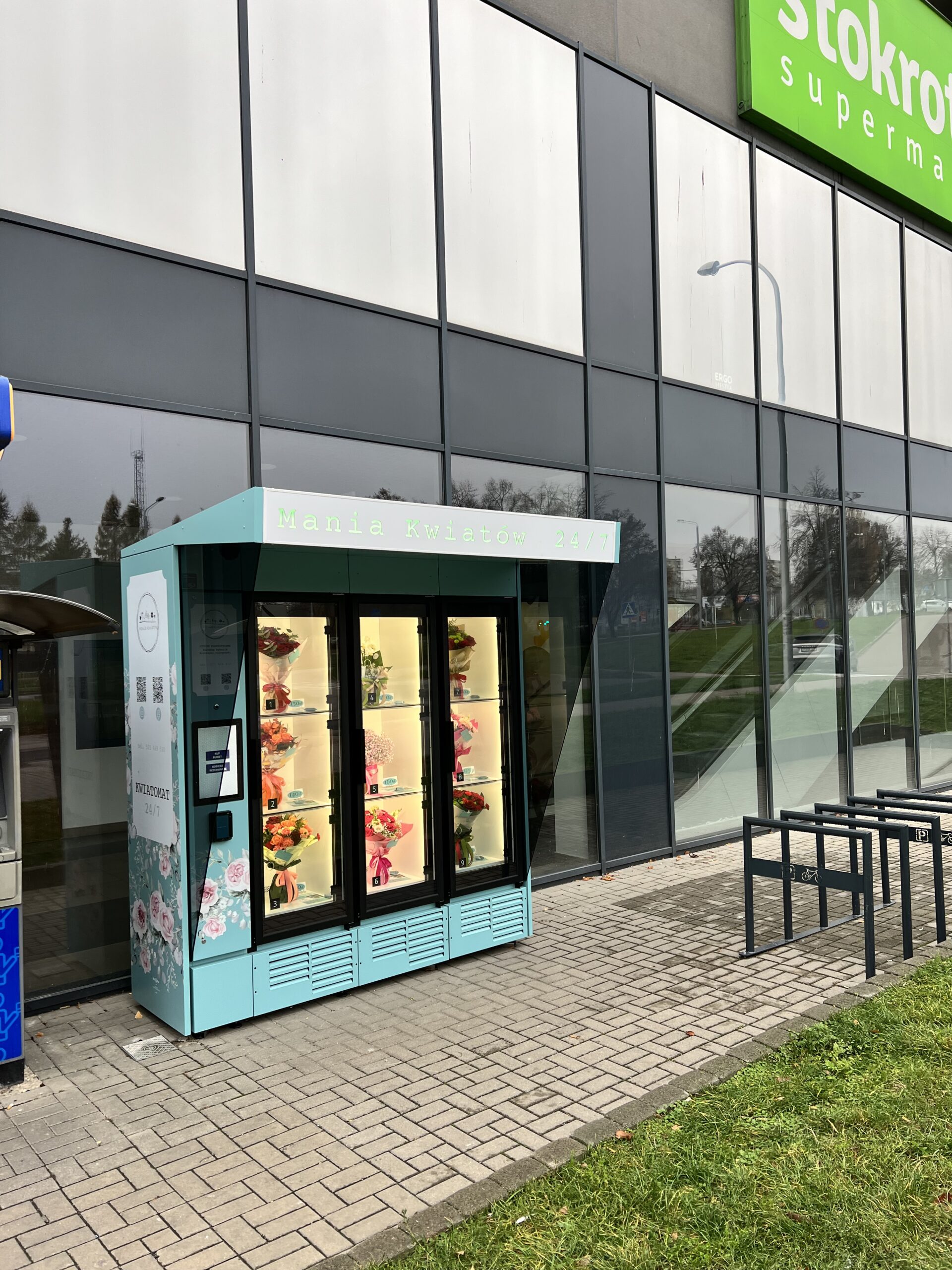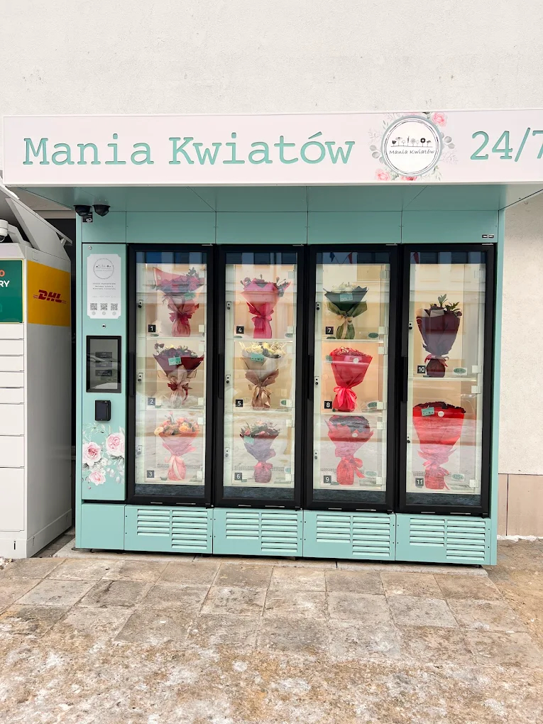 Odbierz swój bukiet Samodzielnie i dość mocno pociągnij za pierwsze drzwi. Za drzwiami znajdują się trzy okienka. Kwiatomat otworzy tylko okienko z Twoim bukietem.